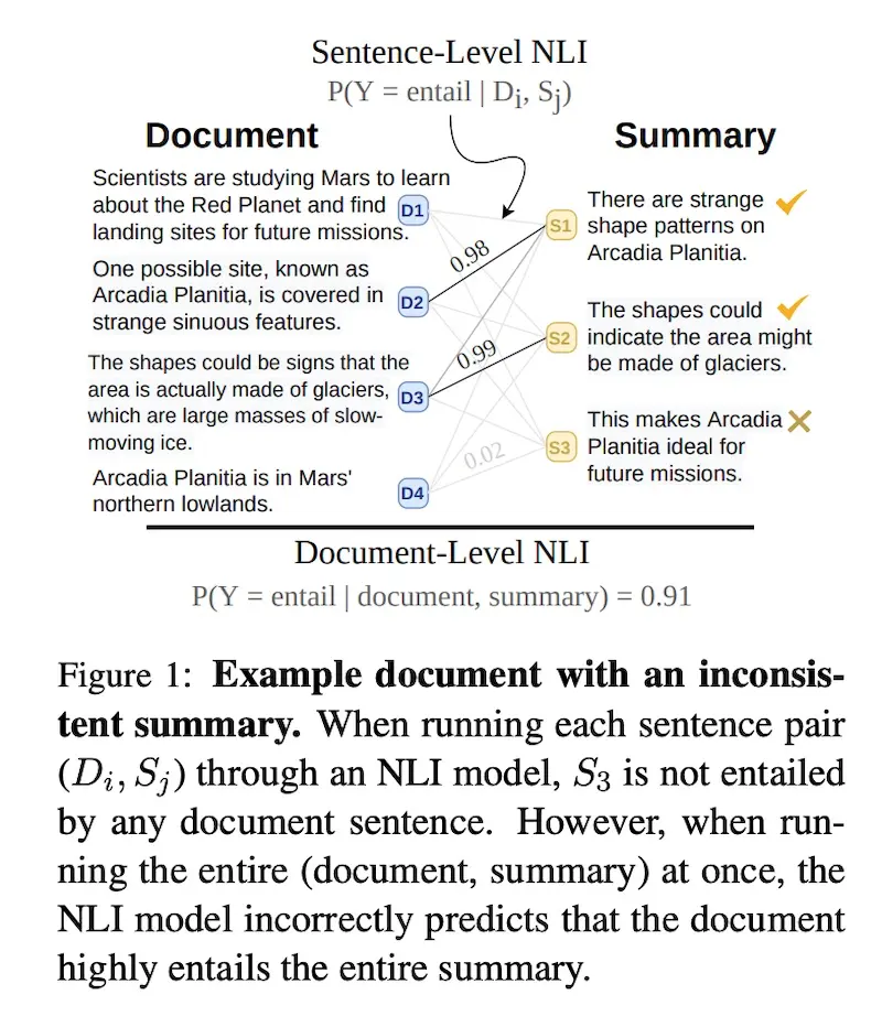 - Consistency: The factual alignment between the summary and the summarized source. A factually consistent summary contains only statements that are entailed by the source document. Annotators were also asked to penalize summaries that contained hallucinated facts.